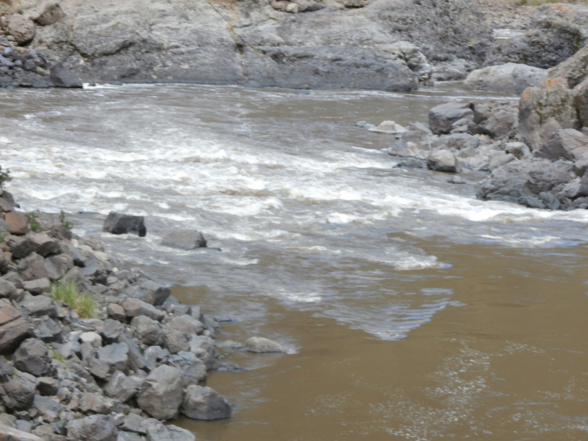 The world’s second highest railway runs up the valley. It was the highest until the Chinese built one higher. Just as I moved off from taking a picture a train came out the tunnel.